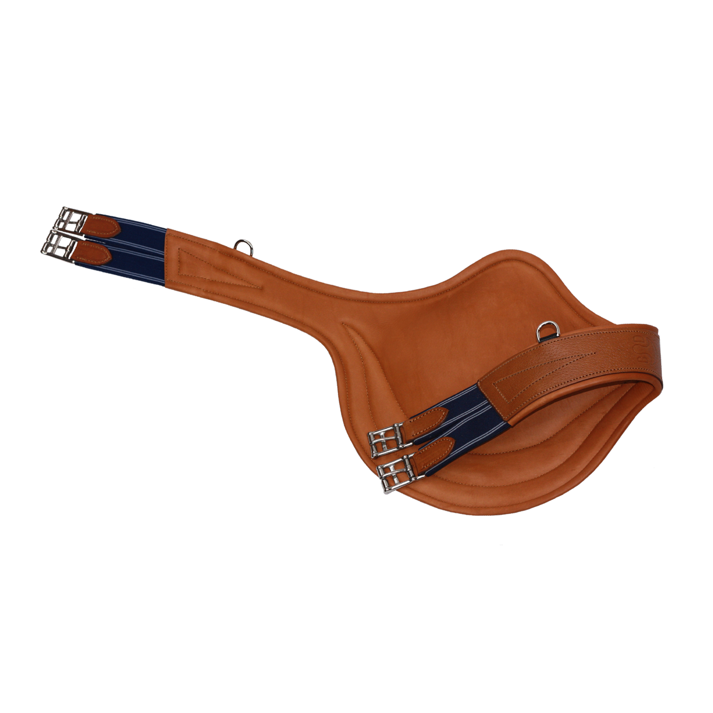 Bruno Delgrange’s belly guard girth is made from full-grain leather and designed to ensure maximum shock absorption while providing comfort to the horse. Its ergonomic shape will guarantee your horse’s freedom of movement thanks to its memory foam reinforcement. It has a central, snap hook, with a “D” on each side to attach your reins. For your comfort, all our girths have a semi-automatic strapping system.