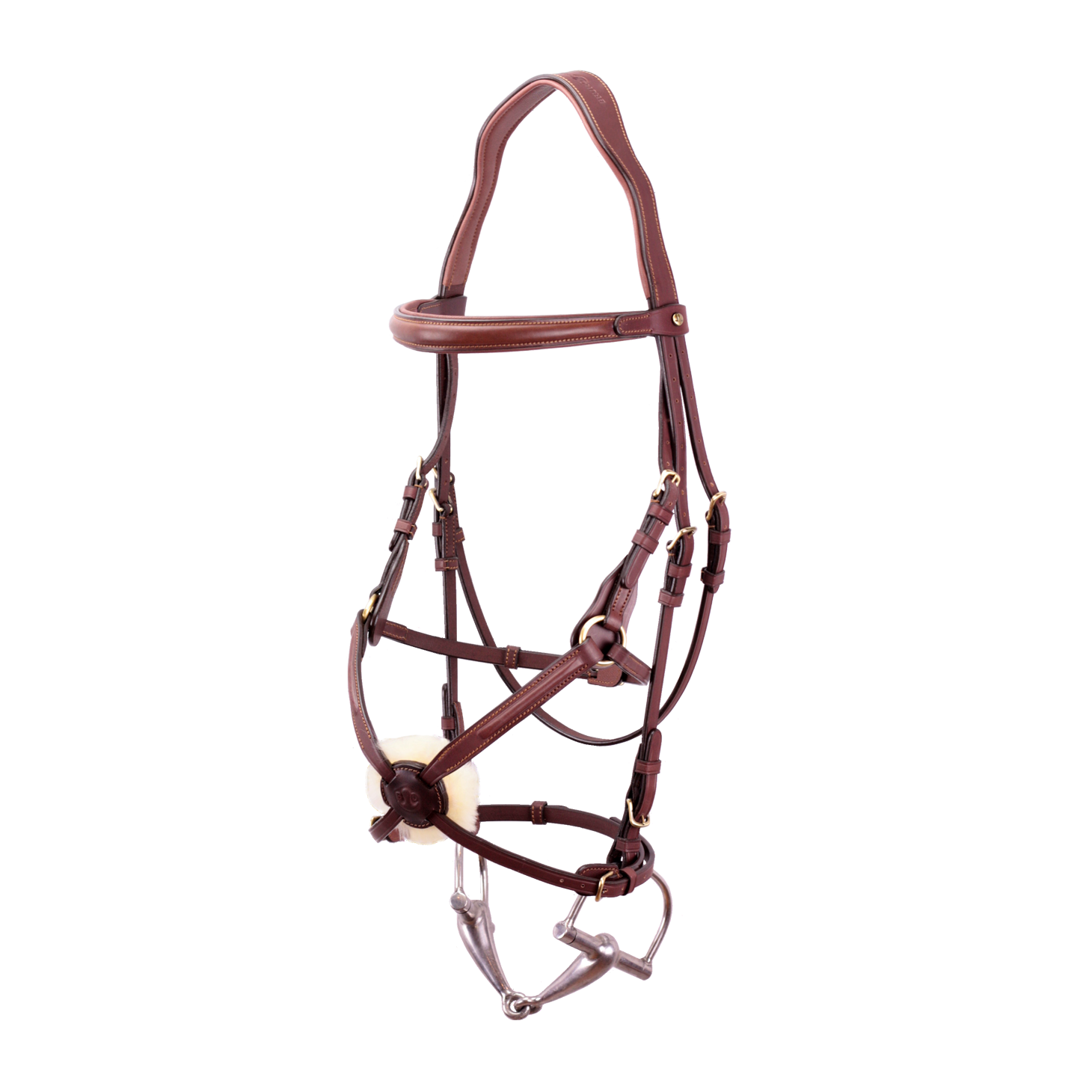 Discover our new jumping snaffle bridle designed by Bruno Delgrange. Made of soft full-grain leather carefully selected to reflect Bruno Delgrange’s high quality standards, it will follow you during competitions as well as daily work. Thanks to its ergonomic headpiece and its French figure eight adjustable on both sides, this snaffle bridle avoids pressure on the horse’s ears and feels really comfortable. This bridle comes with a leather nose pad and a sheepskin nose pad so as to satisfy every riders' taste. Nails and buckles are engraved with the BD initials to emphasize the elegance of the Bruno Delgrange brand.