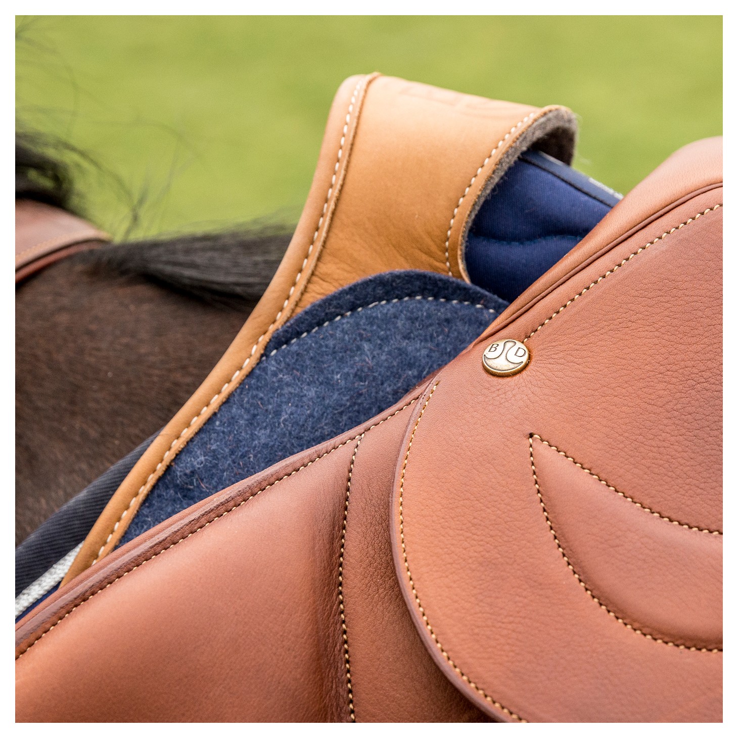Bruno Delgrange created this shock absorbing saddle pad thanks to his experience as a horse rider. This unique saddle pad does not compress the withers and was immediately adopted by the best riders (Gregory Wathelet, Luciana Diniz, Eric Lamaze...). Aesthetically designed and with an ergonomic form, it will be the perfect partner of your saddle.