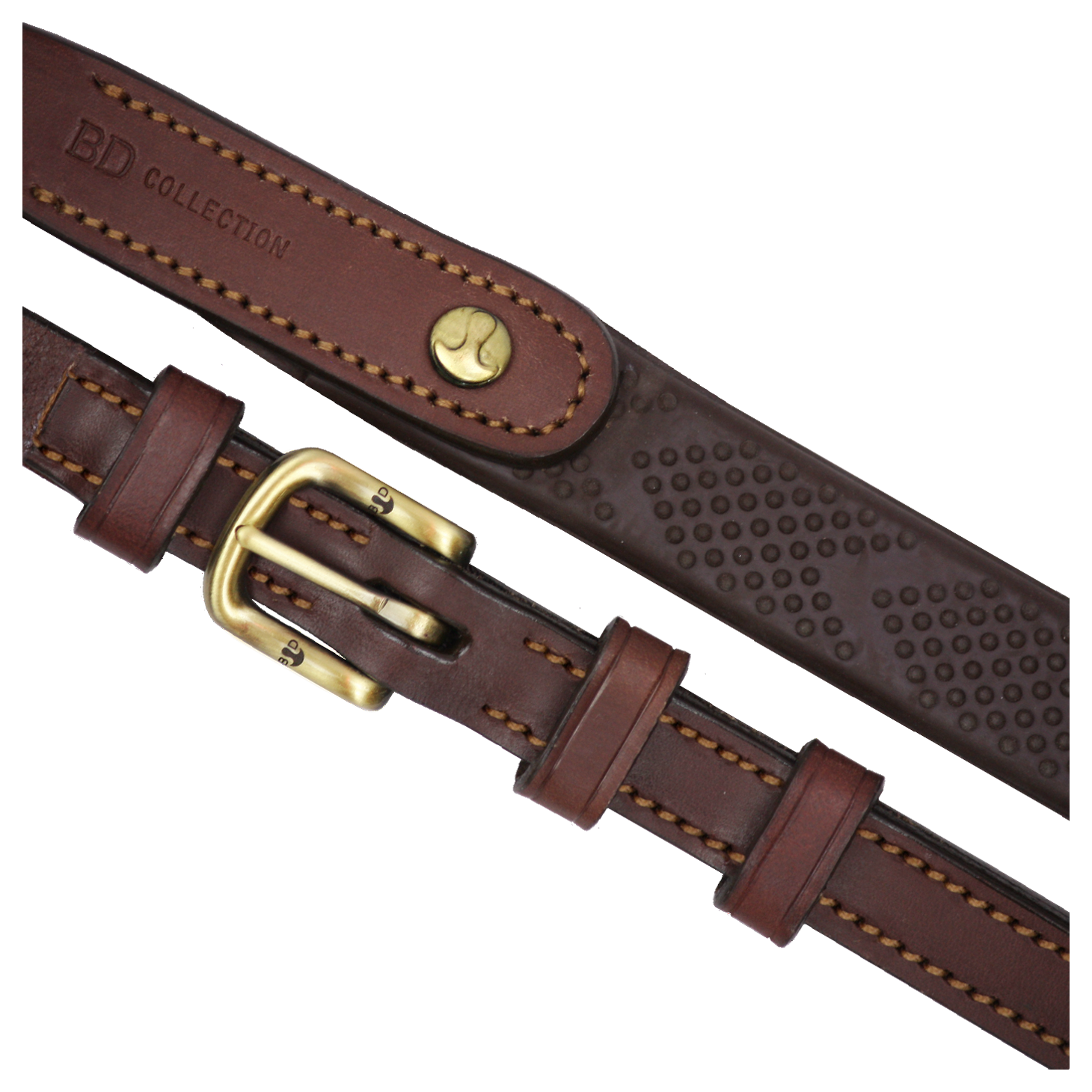 Ces rênes s’allieront parfaitement avec votre nouveau bridon Bruno Delgrange. En cuir pleine fleur et caoutchouc ultra souple, il vous offre une adhérence optimale et un confort parfait. Ses petits clous plaqués et ses boucles marquées soulignent toute l'élégance de la marque Bruno Delgrange.