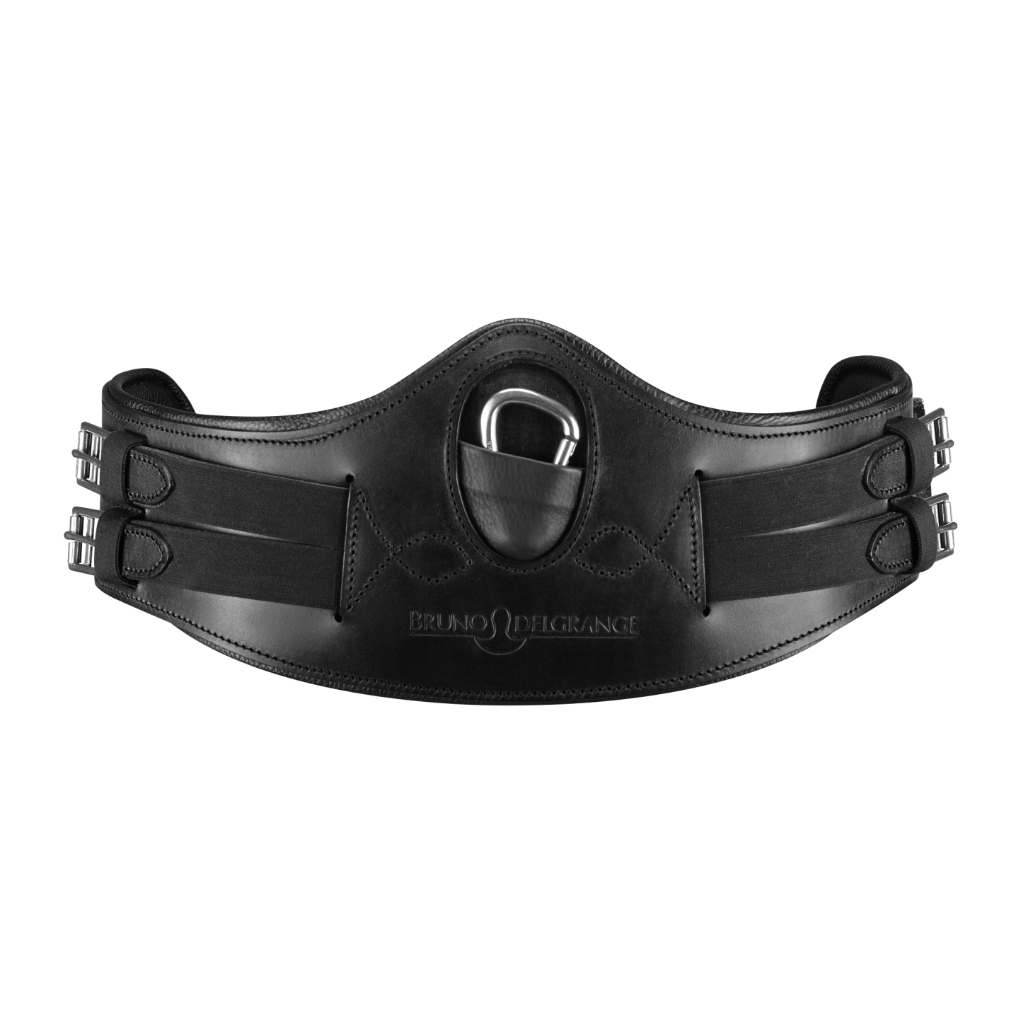 Réalisée en cuir pleine-fleur pour un confort optimal. Très confortable grâce à son renfort de mousse à mémoire de forme, elle possède des élastiques doubles épaisseurs ainsi qu'un mousqueton central encastré. Pour votre confort, toutes nos sangles disposent d'un système de sanglage semi-automatique.