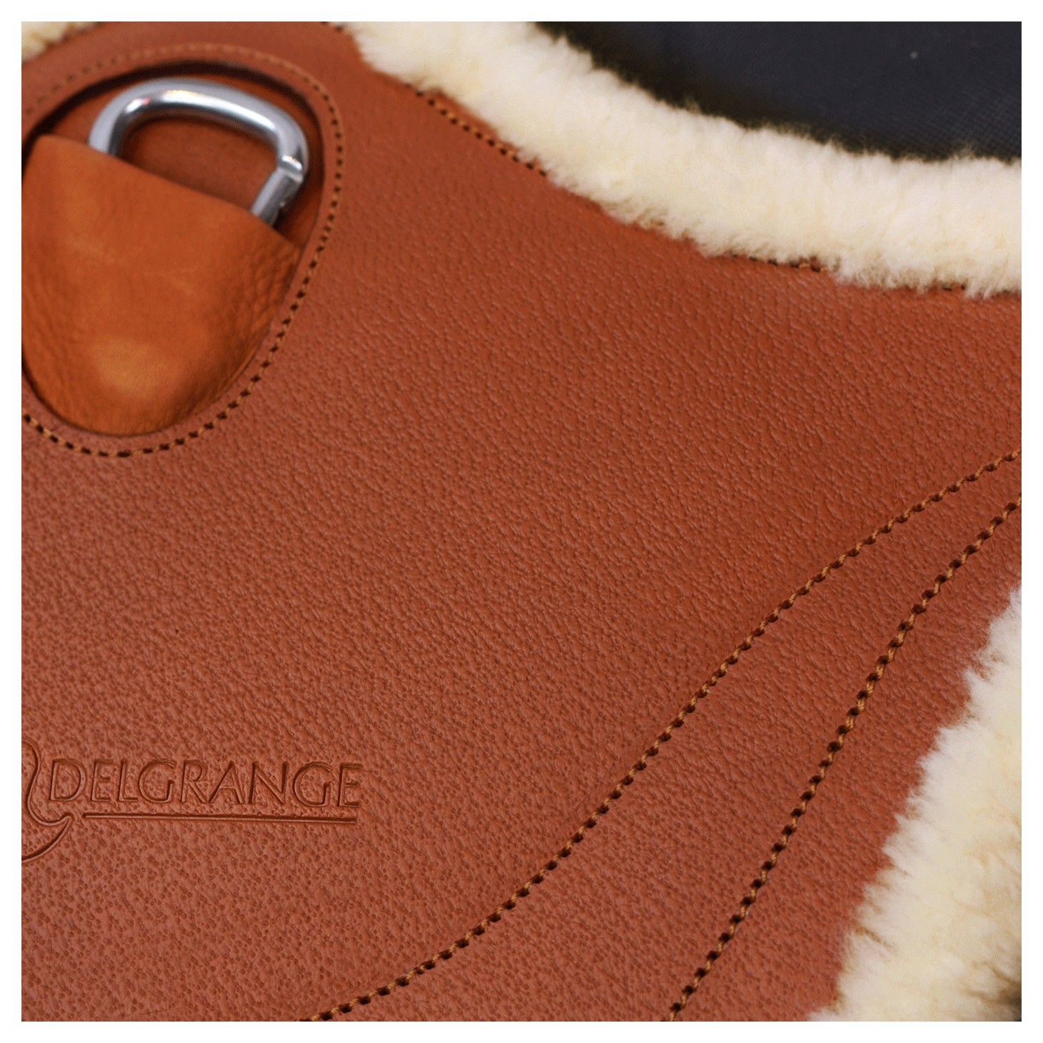 Tous les cavaliers qui l'ont essayée, l'ont adoptée: la sangle en mouton Bruno Delgrange. Sa forme ergonomique favorise les mouvements de votre cheval. En cuir pleine-fleur et en mouton véritable, elle est hypoallergénique, anti-irritation et ultraconfortable grâce à son renfort de mousse à mémoire de forme. Cette sangle possède un mousqueton central et plaqué, avec un « D » de chaque côté afin d'attacher vos enrênements. Pour votre confort, toutes nos sangles disposent d'un système de sanglage semi-automatique
